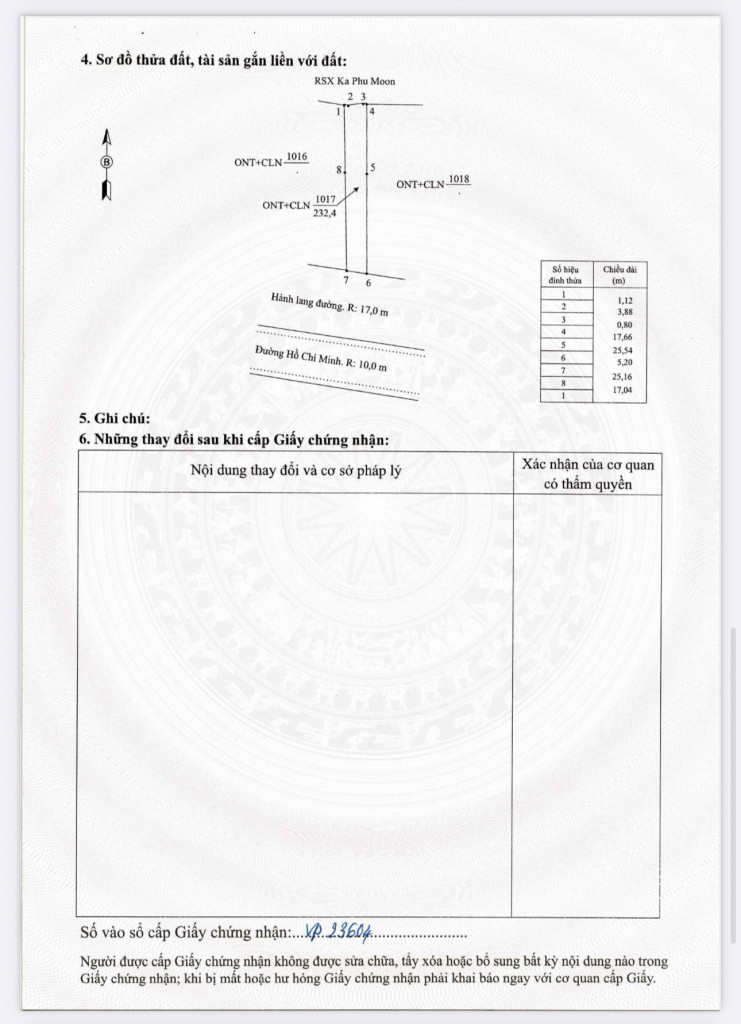 - Diện tích: 5,2m x 43 m = 232mét. (trong đó 108m thổ cư, còn lại là CLN).