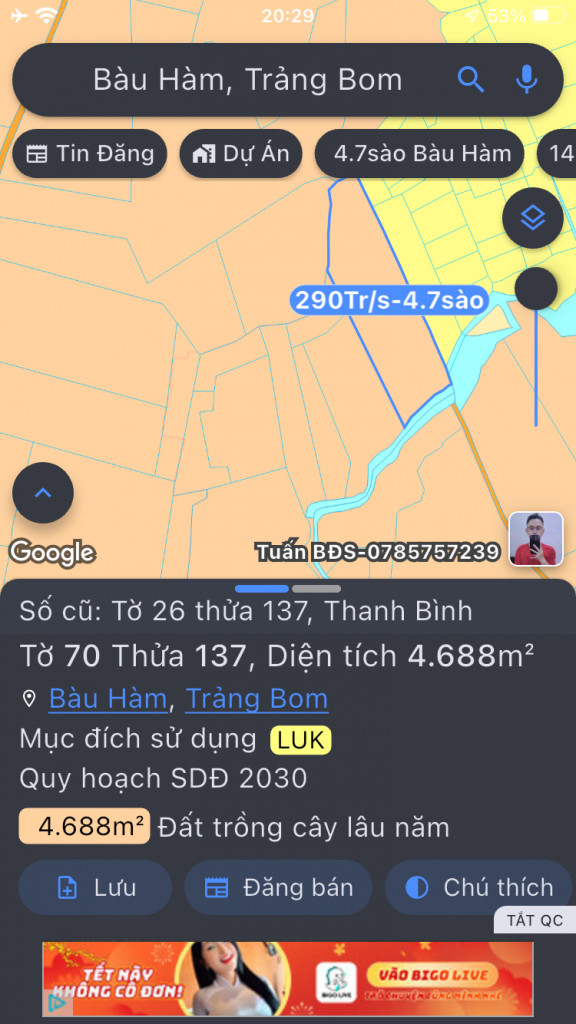 Quý vị đang xem nội dung tin rao "Bán 11000m2 đất thanh bình trảng bom" - Mã tin 1675966. Mọi thông tin, nội dung liên quan tới tin rao này là do người đăng tin đăng tải và chịu trách nhiệm. Raovat321.com luôn cố gắng để các thông tin được hữu ích nhất cho quý vị tuy nhiên Raovat321.com không đảm bảo và không chịu trách nhiệm về bất kỳ thông tin, nội dung nào liên quan tới tin rao này. Trường hợp phát hiện nội dung tin đăng không chính xác, Quý vị hãy bấm nút Báo vi phạm để thông báo và cung cấp thông tin cho Ban quản trị RaoVat321.com.