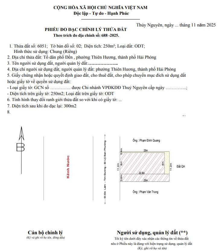 Chuyển nhượng lô đất 250m2 bìa đỏ tại Lâm Động nay là TDP Đền, Phường Thiên Hương, Hải Phòng.