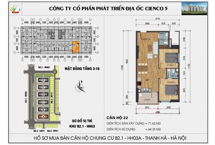 • Diện tích: 71.63m2 – Thiết kế tối ưu: 2PN, 2WC, khách, bếp.