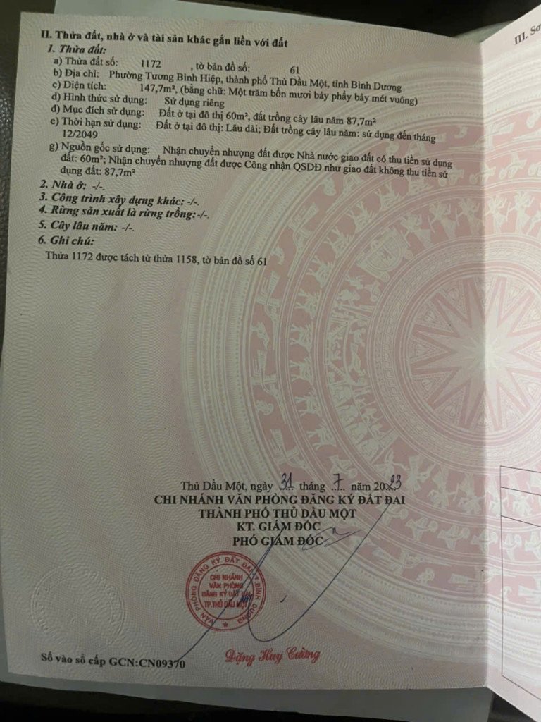 Vị trí: Lô đất nằm trong hẻm thông thoáng, thuộc đường Hồ Văn Cống, phường Tương Bình Hiệp, TP. Thủ Dầu Một, Bình Dương.