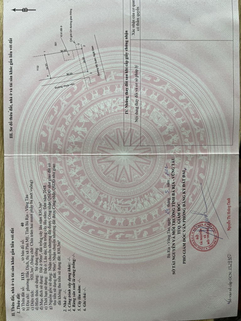Diện Tích: 24 X 38m = 920,3m2 ( có sãng 90 thổ)