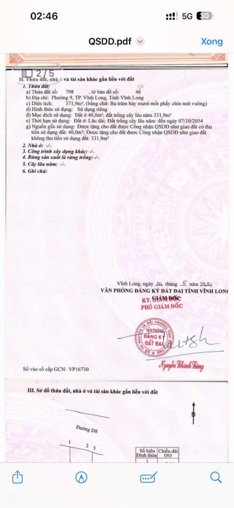 • 📐 Diện tích: 371m (có 40m² thổ cư)