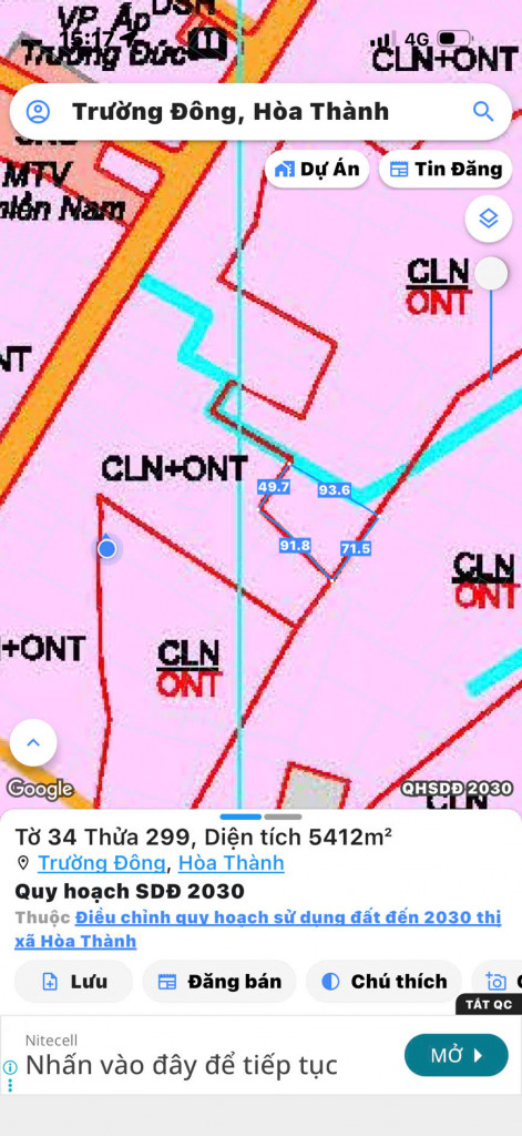 Đất MTNB 10m đường Nguyễn Lương Bằng (Thiên Thọ Lộ) xã Trường Đông (nay là Phường Hòa Thành) tỉnh Tây Ninh.