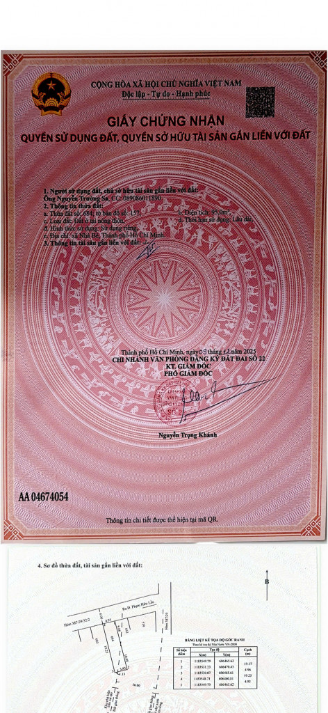 - Loại đất: Đất ở (sử dụng lâu dài)