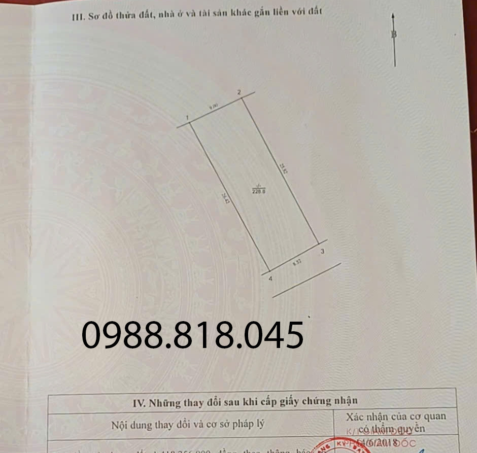 - Diện tích đất 228.8m2, mặt tiền 8.52m - hậu 9m hướng Đông Nam