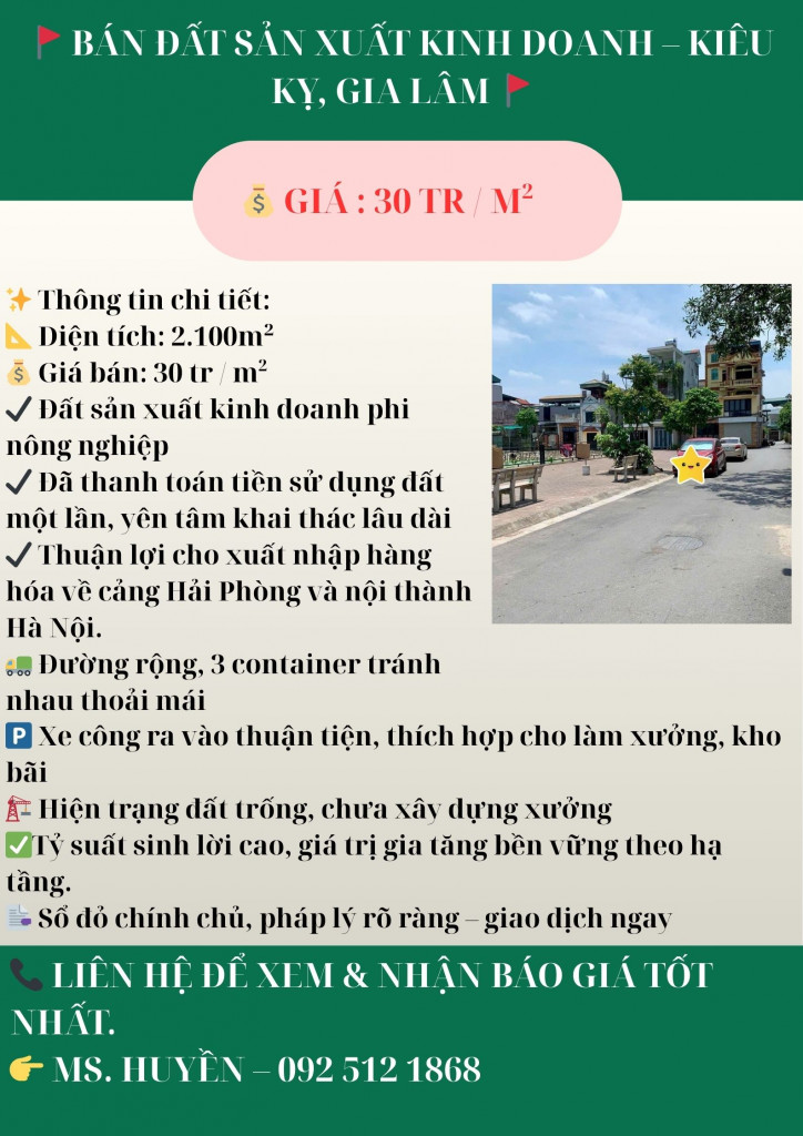 🚩 BÁN ĐẤT SẢN XUẤT KINH DOANH – KIÊU KỴ, GIA LÂM 🚩