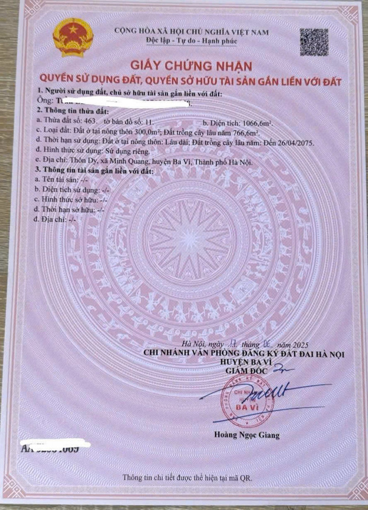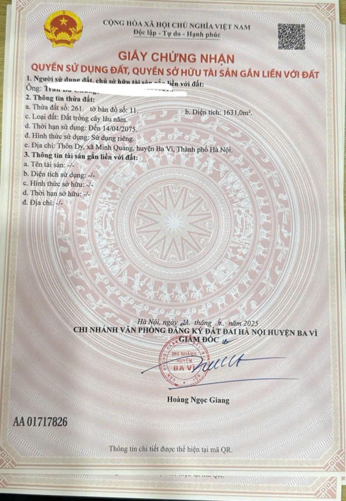 - Chủ cần tiền cắt lỗ sâu mảnh đất view thoáng đẹp, giá cực sốc chỉ hơn 1tr/m2 tại thôn Dy, Ba Vì, Hà Nội (xã Minh Quang cũ )