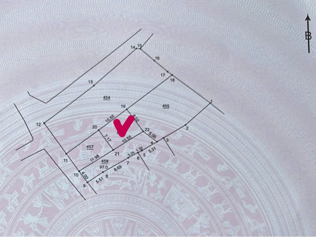 Diện tích 80m², mặt tiền 10.5m, đất vuông vắn, thổ cư 100%.
