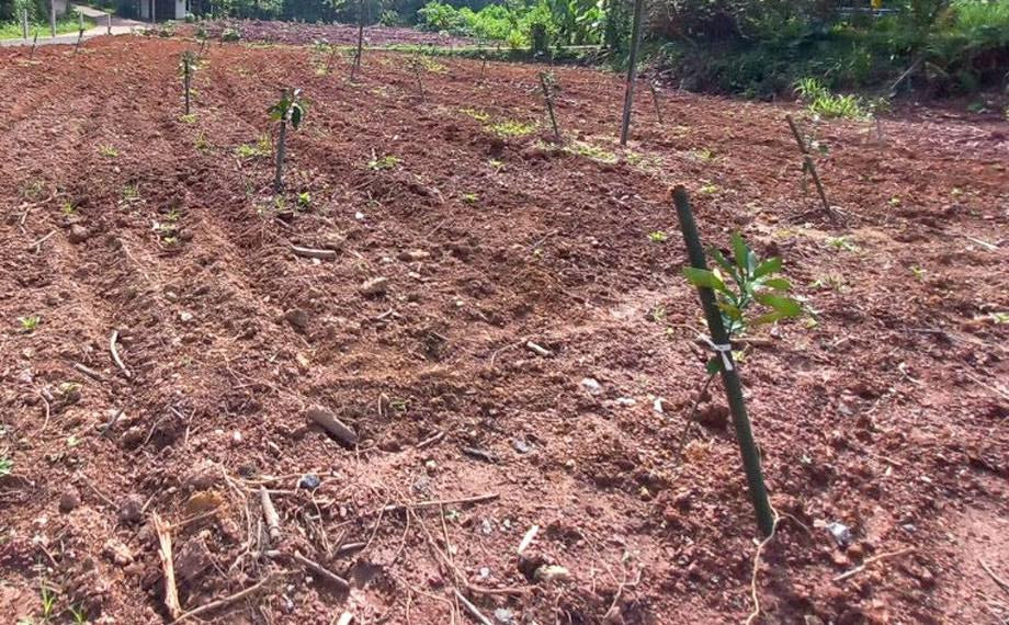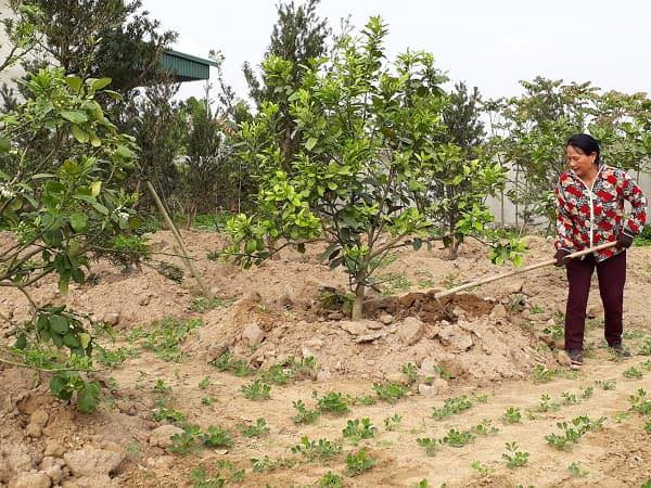 Hiện trạng đang san lấp trồng vườn bưởi, làm đường bê tông 6m từ ngoài vô hết đất.