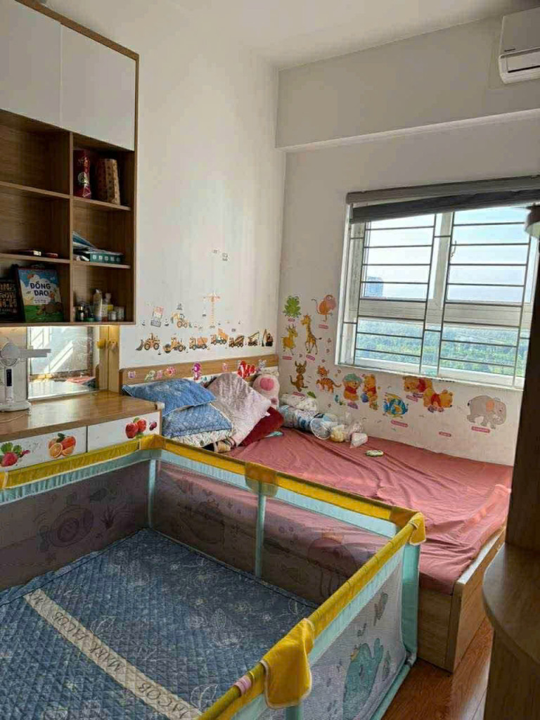 • Phòng ngủ: Giường ngủ gỗ, tủ kệ âm tường/đứng. Đặc biệt có không gian dành cho bé với cũi/khu vui chơi an toàn và decal tường sinh động. Cửa sổ lớn đón ánh sáng tự nhiên.