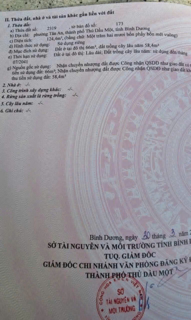 📍 Vị trí: Lô đất tọa lạc tại phường Tân An, TP. Thủ Dầu Một, Bình Dương, nằm trên trục đường lớn, giao thông thuận lợi, chỉ vài phút di chuyển đến trung tâm thành phố. Khu dân cư hiện hữu, an ninh, hạ tầng hoàn chỉnh, thích hợp xây nhà ở, kinh doanh hoặc đầu tư sinh lời.