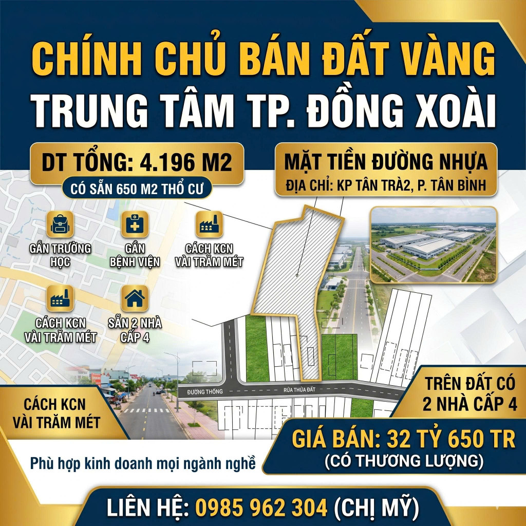 Bán gấp lô đất vàng 4196m2 - 650m2 thổ cư mặt tiền nhựa tttp đồng xoài. lh:0985962304.
