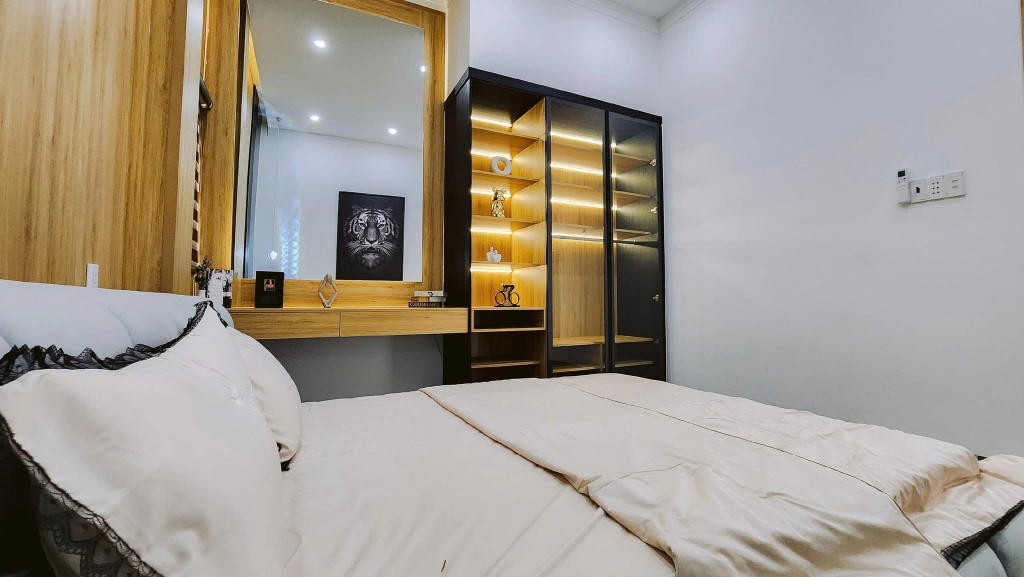 Tiện ích: Nhà mới xây, đã hoàn thiện nội thất, bao gồm 3 phòng ngủ, 3 nhà vệ sinh, phòng khách và bếp rộng rãi, sân thượng thoáng mát. Thiết kế tối ưu cho gia đình nhỏ hoặc có thể cho thuê.