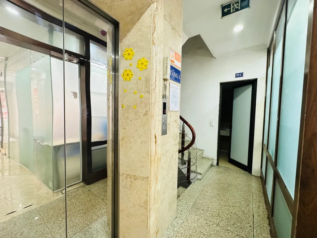 Toà nhà mới, thang máy xịn, PCCC đầy đủ, thiết kế thông sàn chuẩn văn phòng hiện đại.