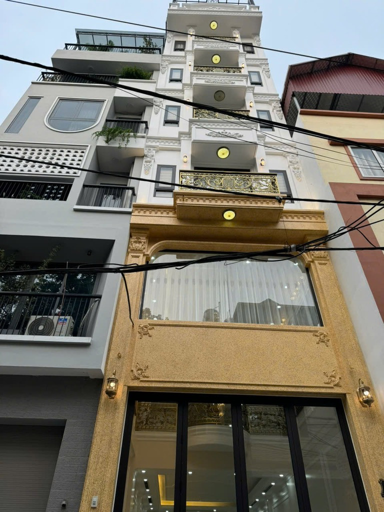 Nhà 8 tầng thang máy, mặt tiền rộng, kiến trúc hiện đại.