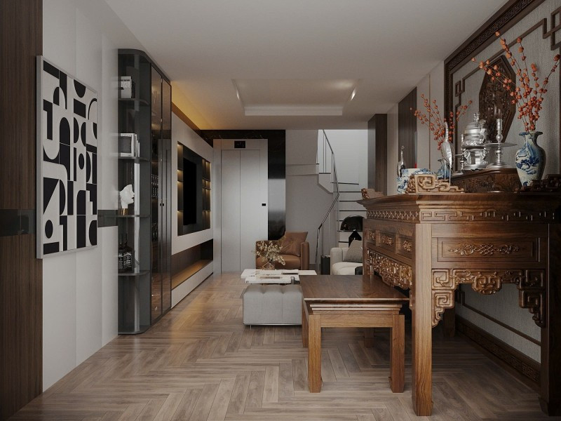 Nhà xây 4 tầng + lửng + tum hiện đại, công năng tối ưu: