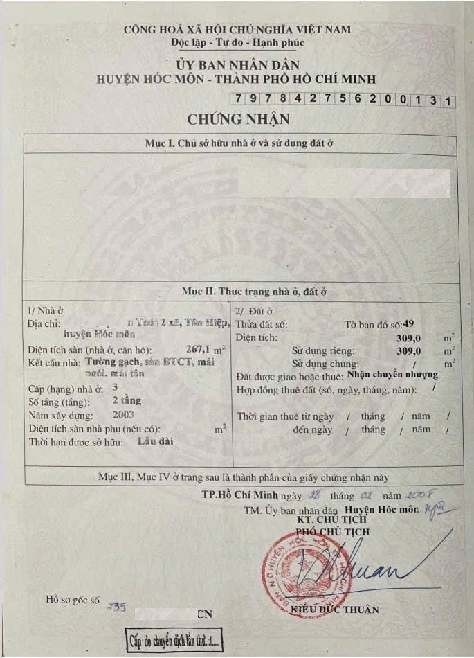 GẦN CHỢ HÓC MÔN-TRƯỜNG CẤP 3 HỒ THỊ BI
