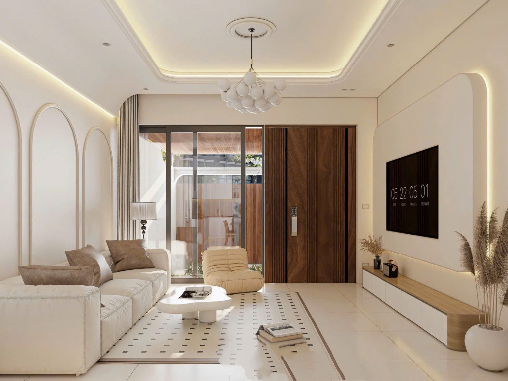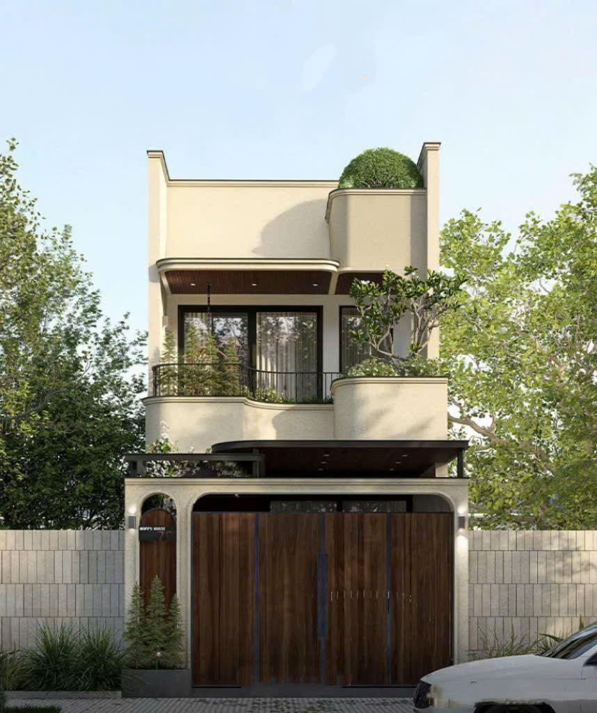 Thiết kế sang trọng – phong cách hiện đại: Mặt tiền rộng rãi, tone màu tinh tế, ban công cây xanh mang lại không gian sống thư giãn và gần gũi thiên nhiên.