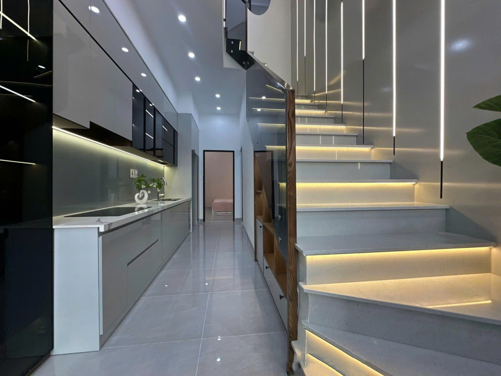Kết cấu: 1 trệt, 2 lầu, 3 phòng ngủ rộng rãi, 2WC, phòng khách sang trọng, bếp tiện nghi, sân để xe hơi và sân thượng thoáng mát.