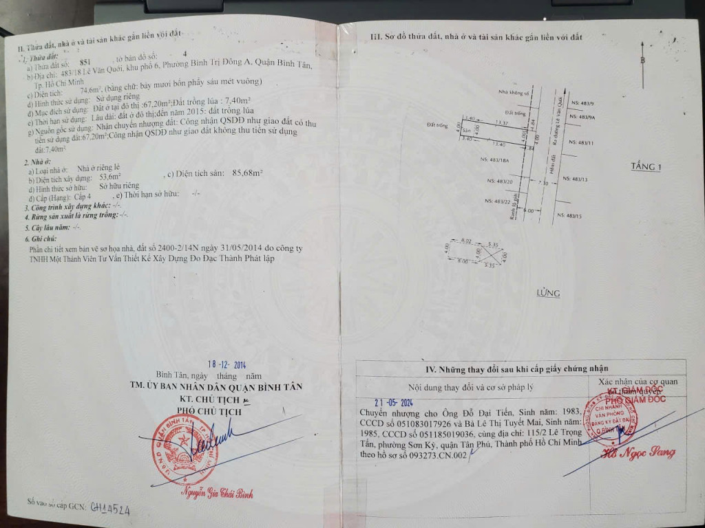 Sổ hồng riêng sang tên nhanh gọn.