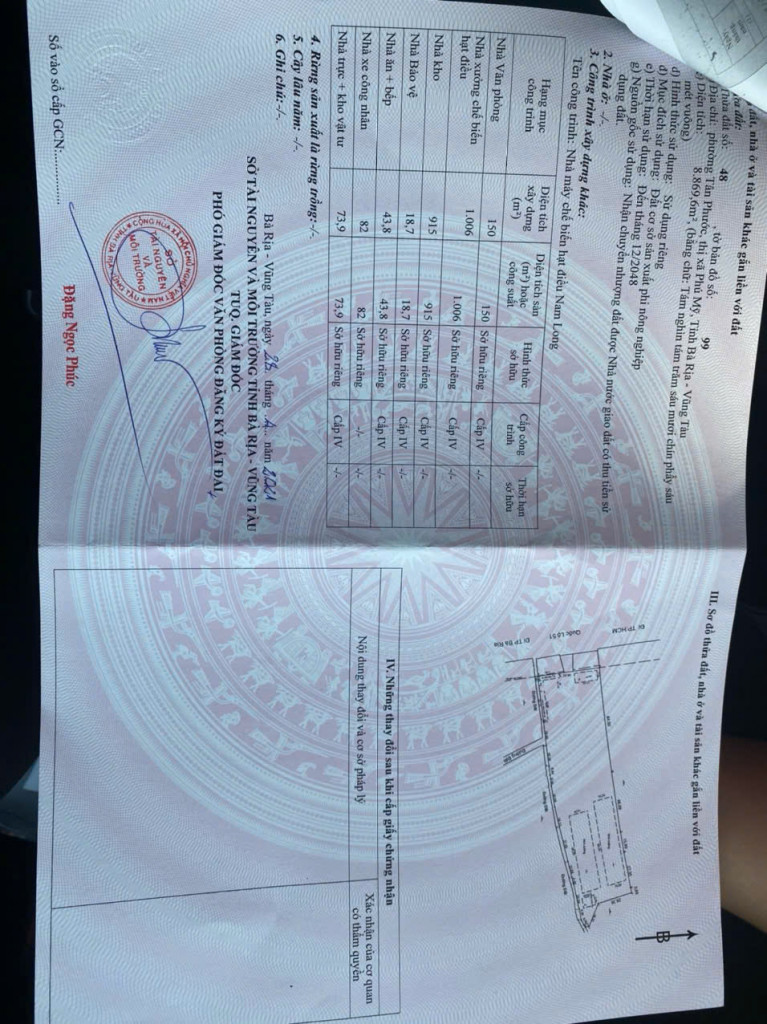 Công trình trên đất: Đã có văn phòng, nhà ở, nhà kho và khu nhà công nhân. Chủ mới có thể tận dụng ngay để khai thác kinh doanh mà không cần đầu tư thêm nhiều chi phí ban đầu.