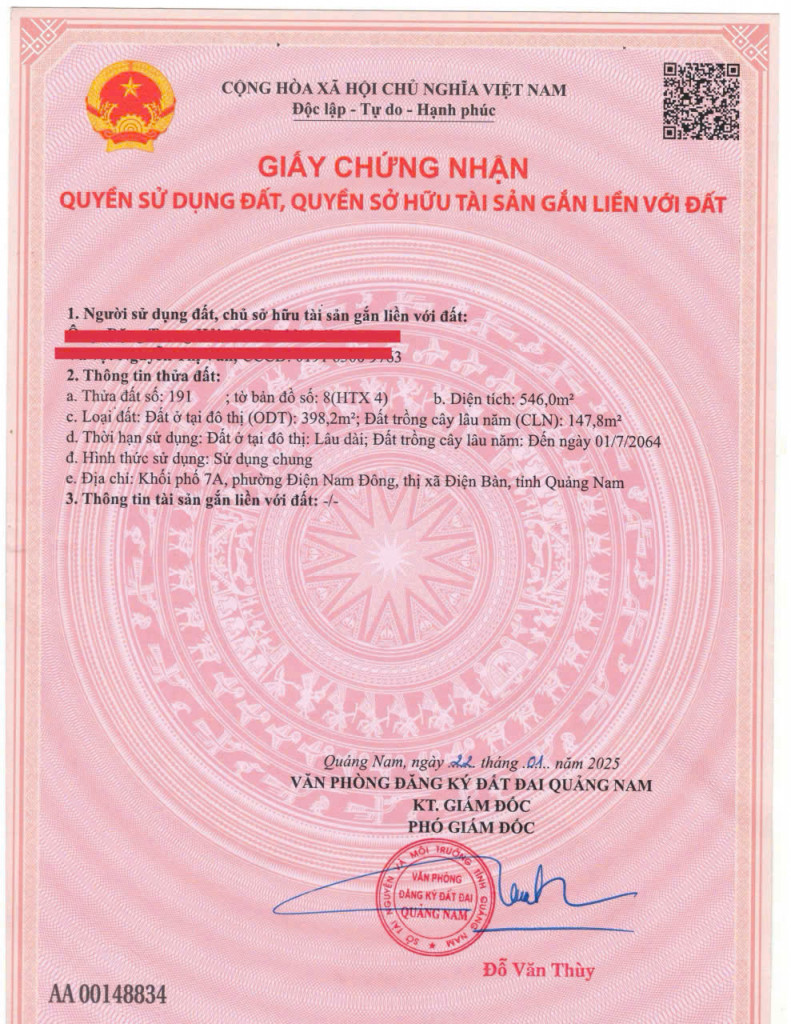 * Diện tích: 546m², phù hợp cho nhiều loại hình sử dụng.