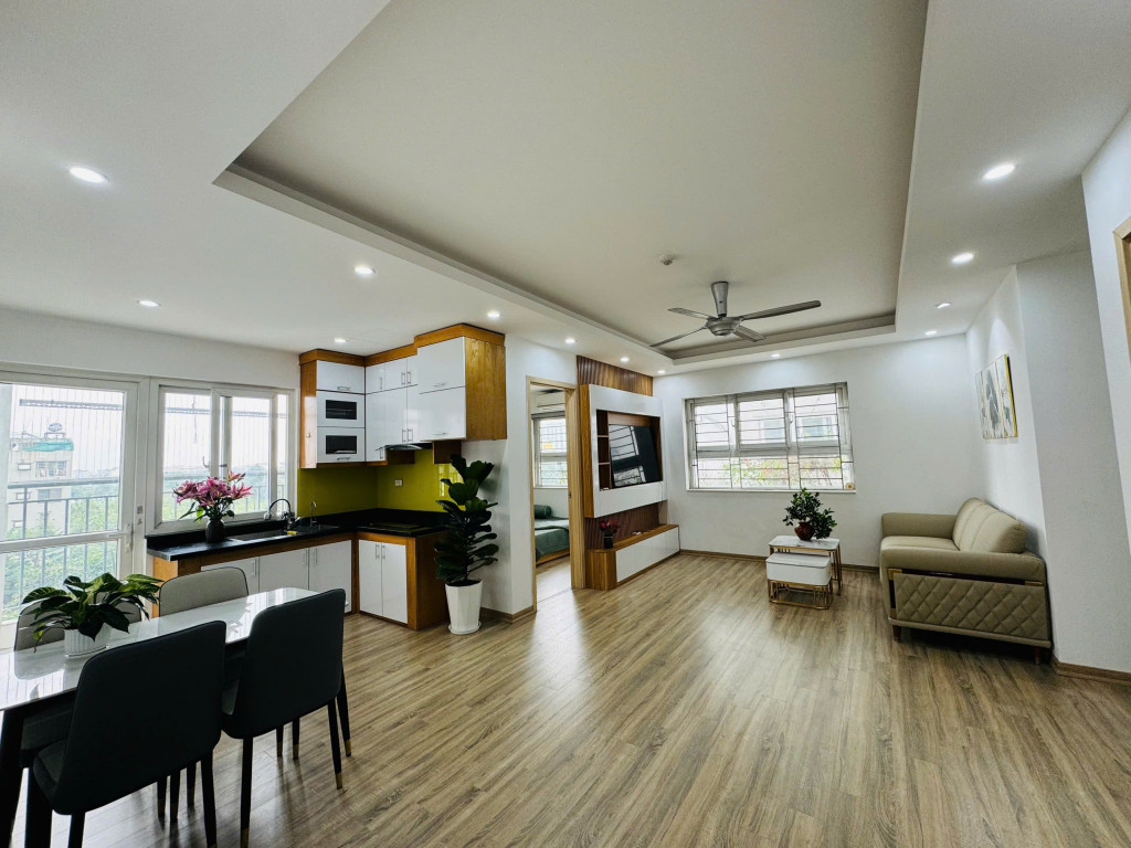 • Nội thất: Sàn gỗ, trần thạch cao, hệ thống tủ bếp, điều hoà, nóng lạnh, bàn ghế, giường tủ, quạt trần, bàn ăn, tủ giày…