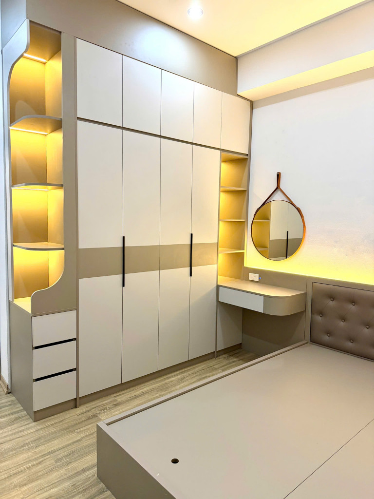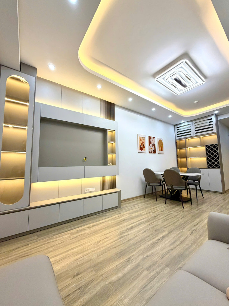 • Nội thất: Sàn gỗ, trần thạch cao, điều hoà, nóng lạnh, sofa, giường tủ phòng, quạt trần, kệ tivi, tủ bếp, bếp từ hút mùi, tủ lạnh…
