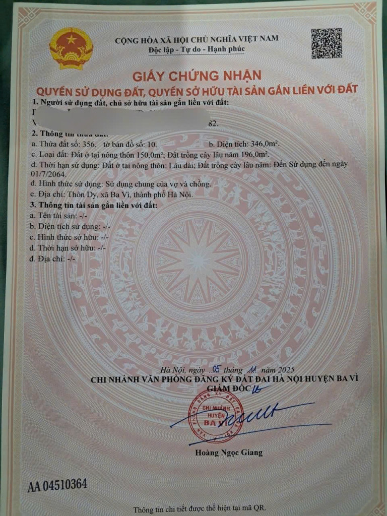 - Đất thuộc thôn Dy, Minh Quang, Ba Vì, Hà Nội