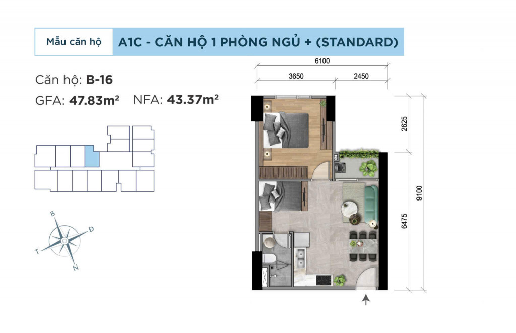 ❗️Căn hộ 1PN : 45,8m2 - 56m2 giá chỉ từ 2,9 Tỷ - 3,2 Tỷ