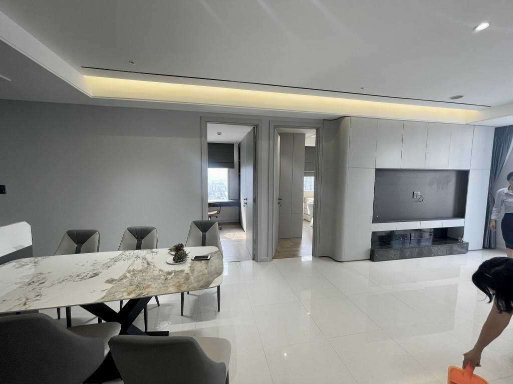 Diện tích 122m², dễ bố trí 1 phòng làm việc riêng, phòng khách rộng, căn góc 2 view, ánh sáng tự nhiên tốt cả ngày.