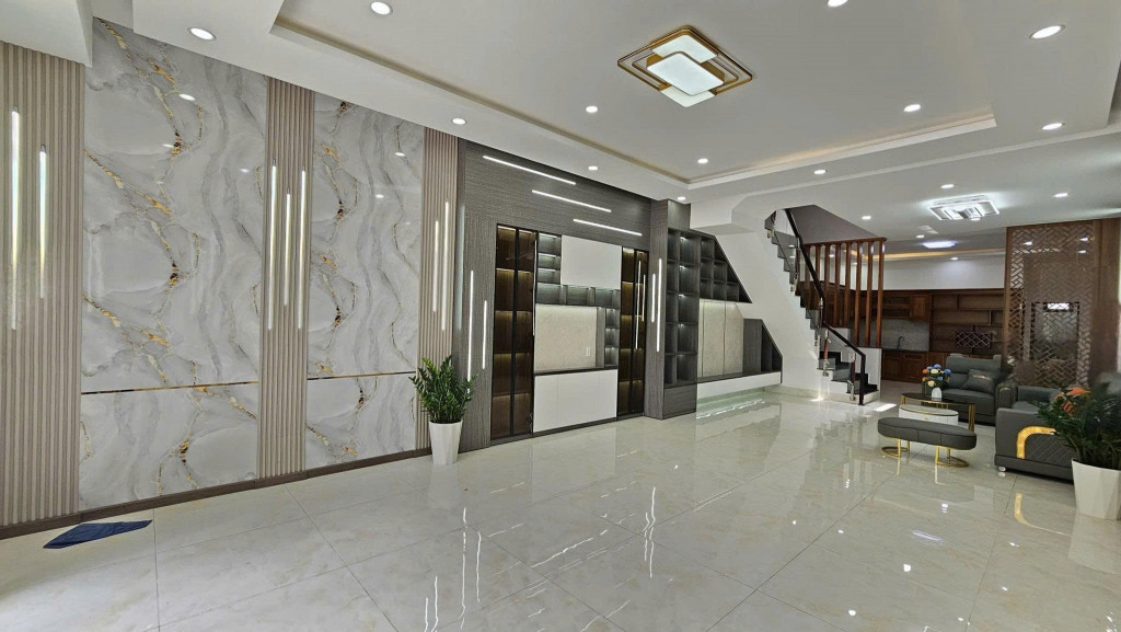 - Kết cấu ngôi nhà: 1 trệt + 2 lầu, 1 phòng (khách, bếp, thờ, giặt), 3 phòng ngủ và 4 nhà vệ sinh. Sân trước 5m, sân sau 10m, đường trước nhà 7m.