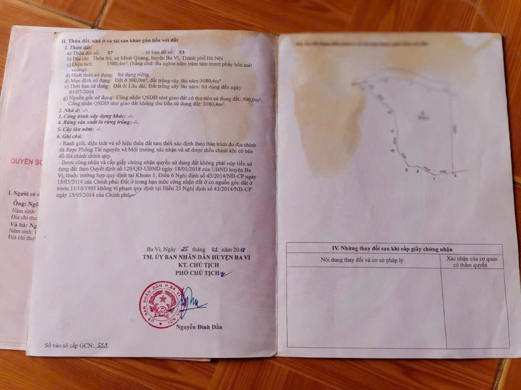 Chỉ với chưa đầy 10 tỷ có ngay lô đất thôn Sổ, Minh Quang, Ba Vì, Hà Nội. Nay là xã Ba Vì mới