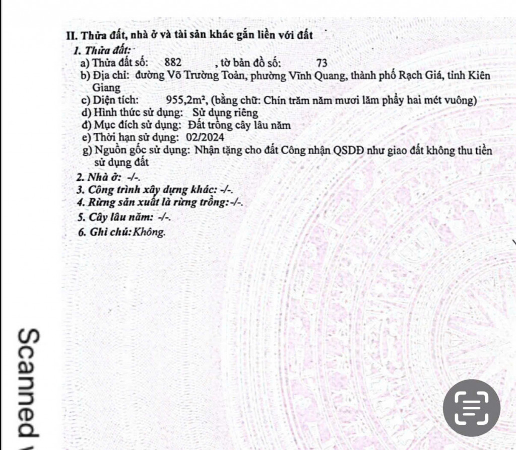 - Diện tích: 955,2 m² . Đất ở 100%.