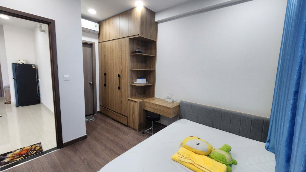 - Phòng ngủ: Giường nệm, tủ áo, bàn trang điểm, máy lạnh.