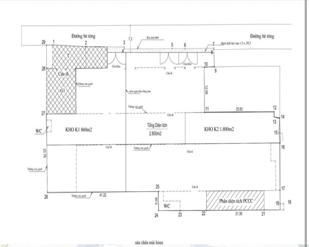 • Gồm: 800m² + 1.800m² (2 kho liền kề)