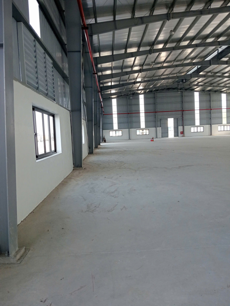 + Diện tích đa dạng 700m² và 1.100m². Kho được xây dựng theo kết cấu khung thép Zamil kiên cố, chiều cao đạt từ 8m - 11m giúp tối ưu không gian lưu trữ. Có sẵn hệ thống điện 3 pha, nước sạch. Đặc biệt kho đã lắp đặt sẵn cẩu trục 5 tấn, cực kỳ thuận tiện cho việc nâng hạ máy móc, hàng hóa nặng.