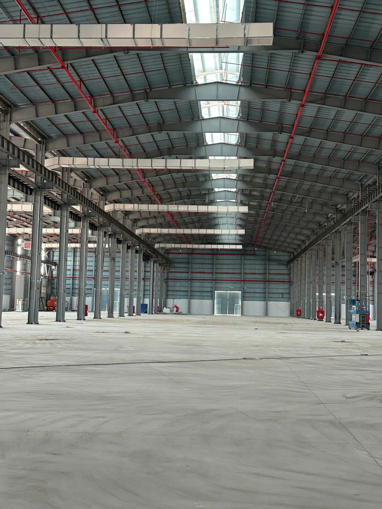 ✔️ Nhà xưởng kết cấu khung thép chắc chắn, cao ráo.Nền bê tông chịu lực tốt