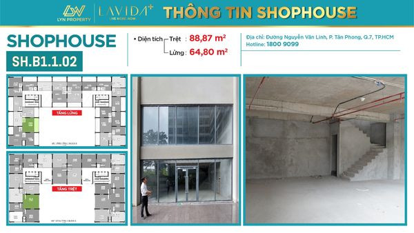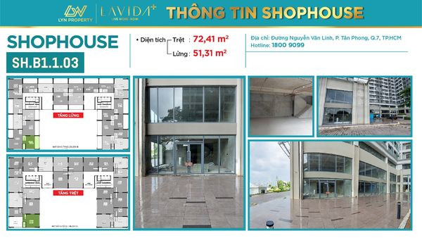 Tọa lạc tại vị trí đắc địa nút giao Nguyễn Văn Linh- Nguyễn Hữu Thọ. Shophouse Lavida Plus với thiết kế hiện đại không gian mở, tầng trệt phù hợp kinh doanh, tầng trên có thể làm văn phòng/nhà ở/không gian trưng bày.