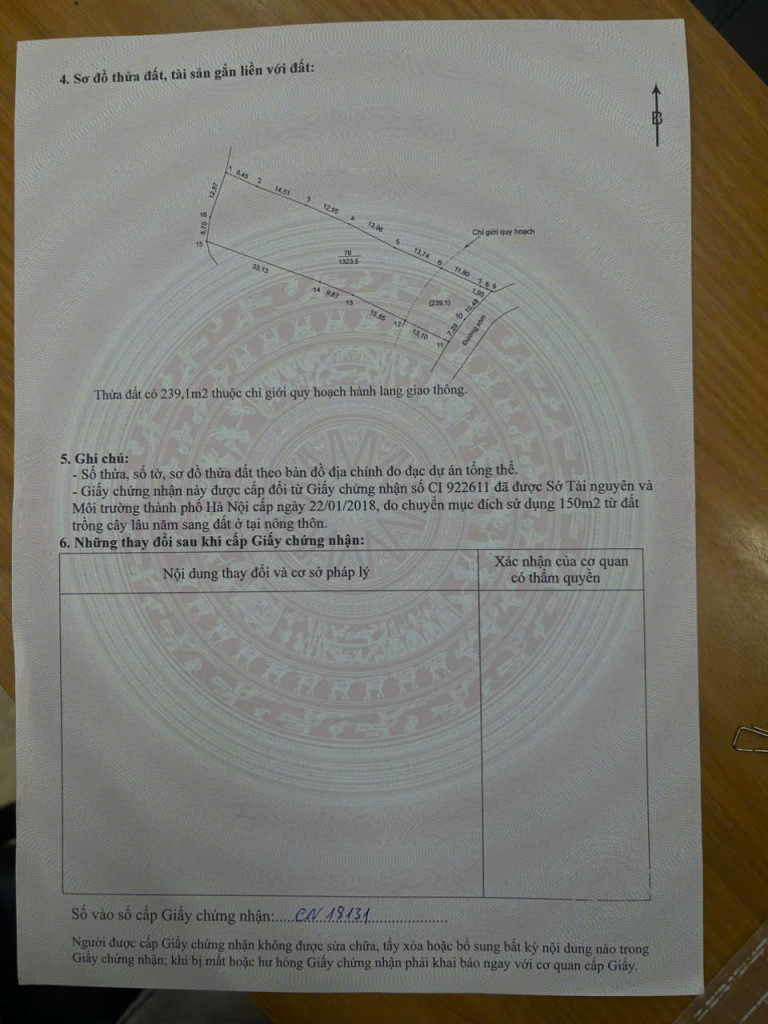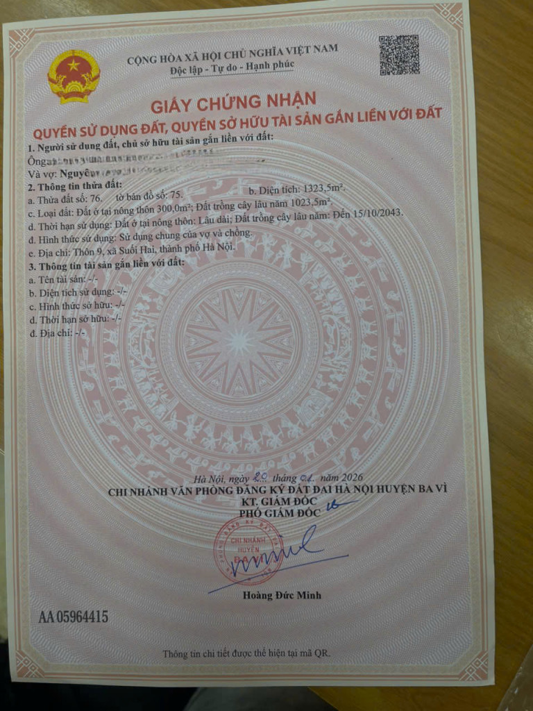 - Diện tích 1323m2, có 300m2 đất ở, còn lại là đất cây lâu năm