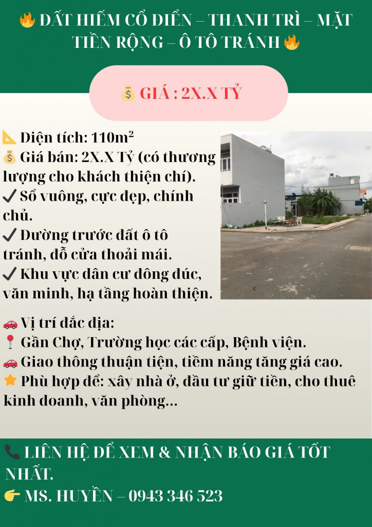 Quý vị đang xem nội dung tin rao "🔥 ĐẤT HIẾM CỔ ĐIỂN – THANH TRÌ – MẶT TIỀN RỘNG – Ô TÔ TRÁNH 🔥" -