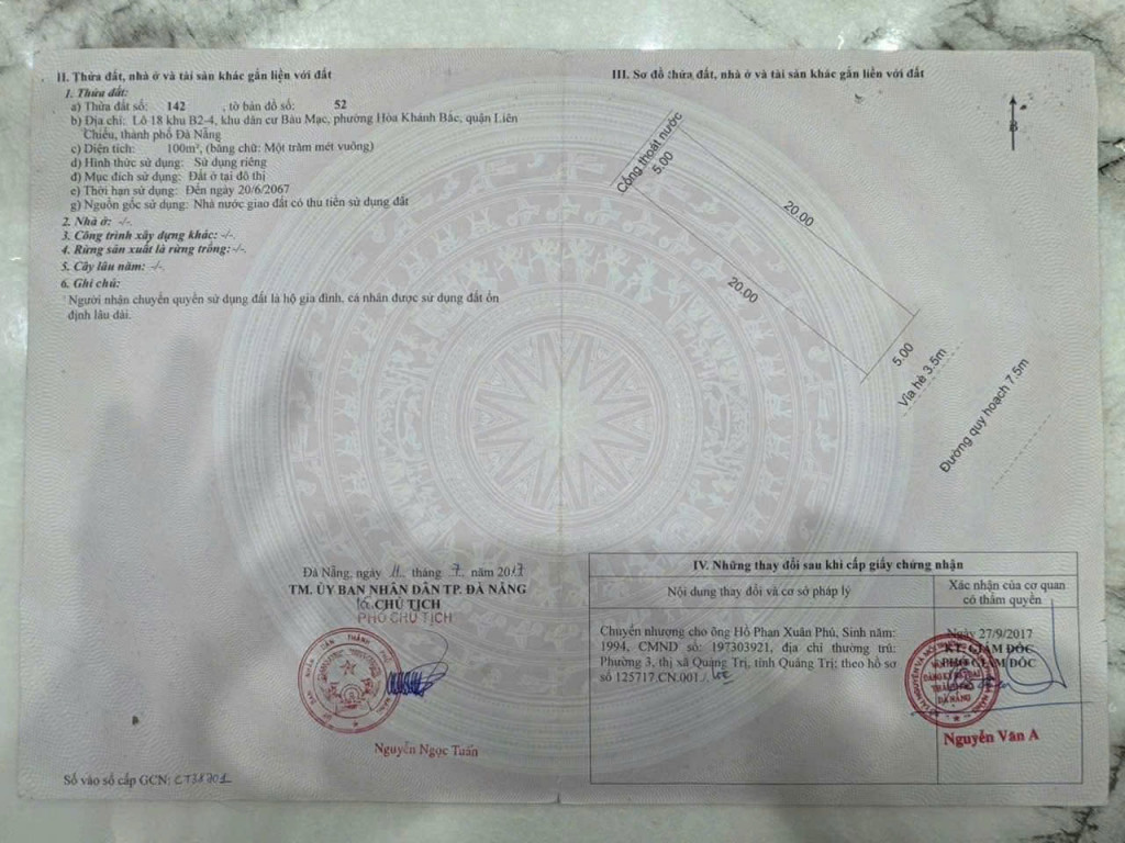 + Vị trí lô đất: đường 7m5 vỉa hè 3.5m Bàu Mạc 21, p. Hòa Khánh Bắc, q.Liên Chiểu. Cách trường THPT Nguyễn Trãi 400m, chợ Phan Văn Định 600m.