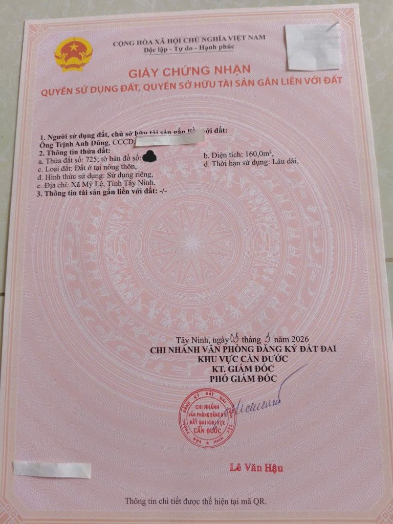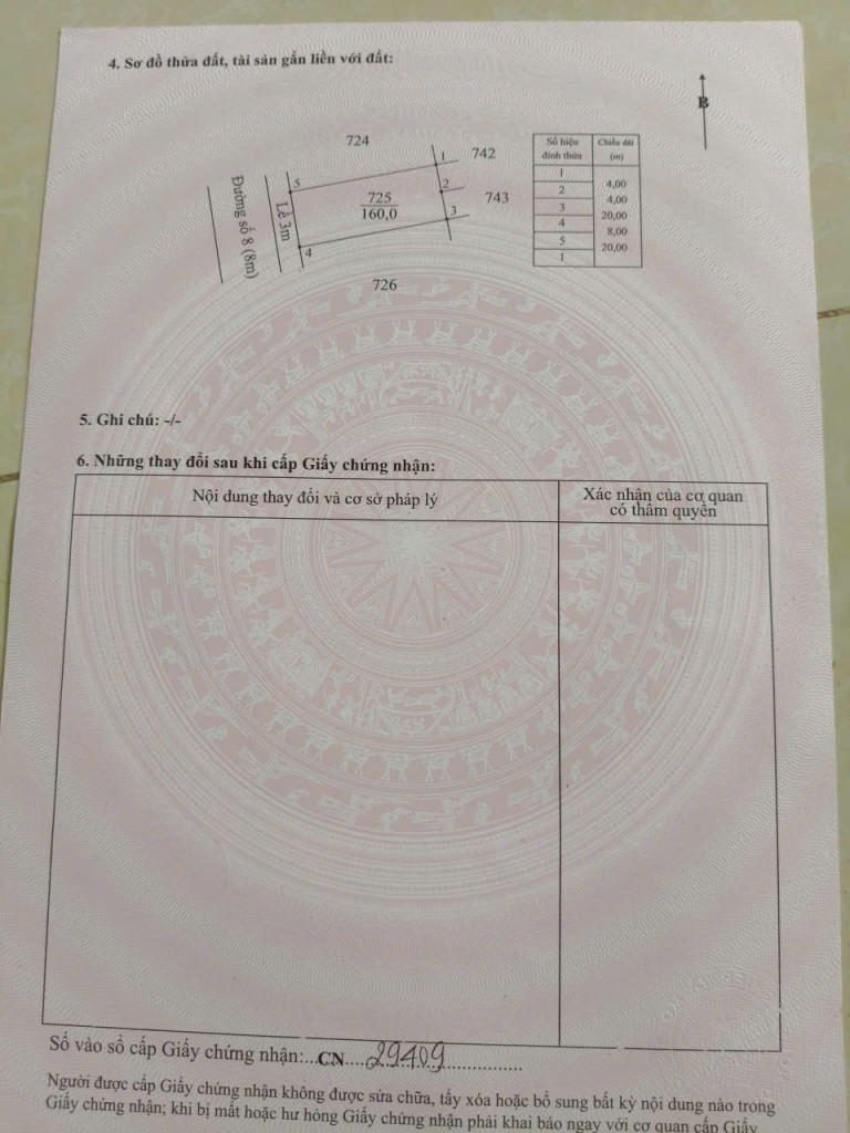 • Diện tích: 8x20m (160m2). Thổ cư hết đất, vuông vức cực đẹp.