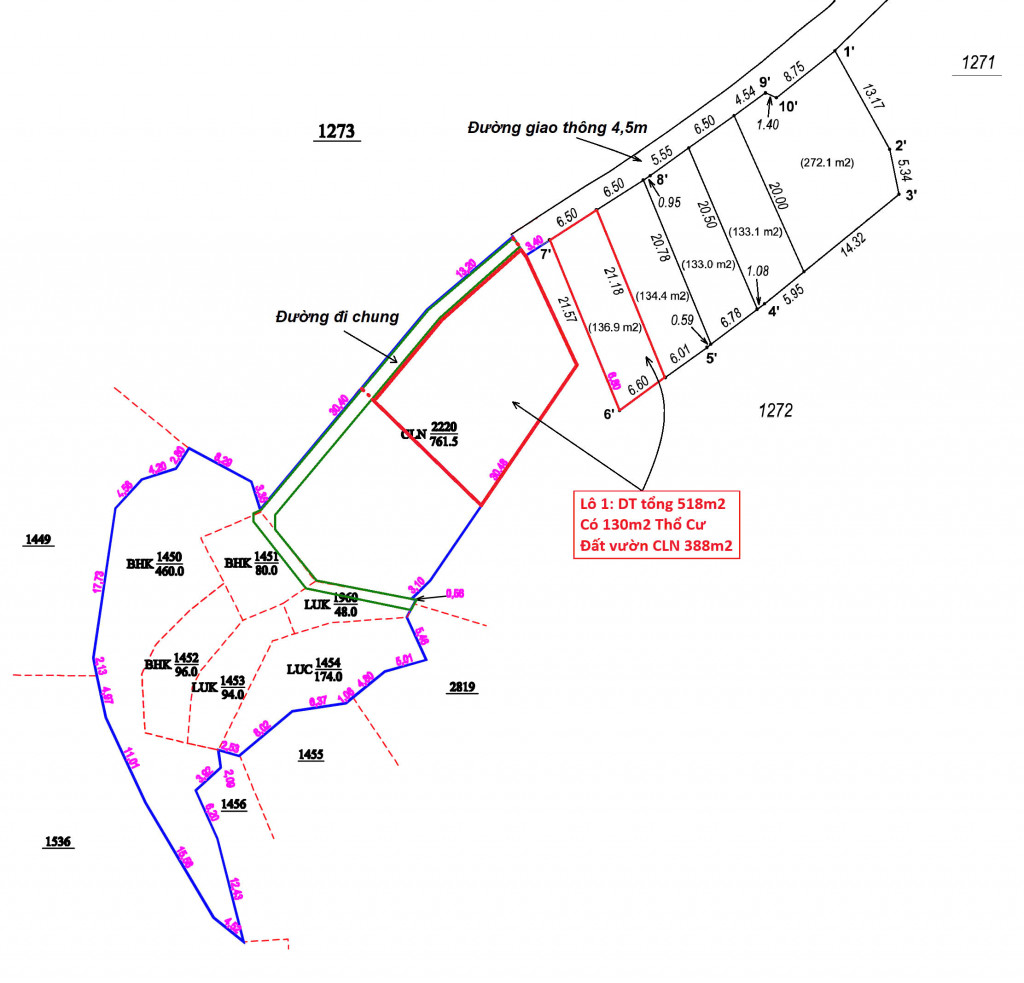 🔥HOT🔥 ĐẤT RỘNG: 518m2, có 130m2 Thổ Cư mà giá chỉ 1 tỷ 1xx Triệu. DT còn lại là đất vườn CLN 388m2.