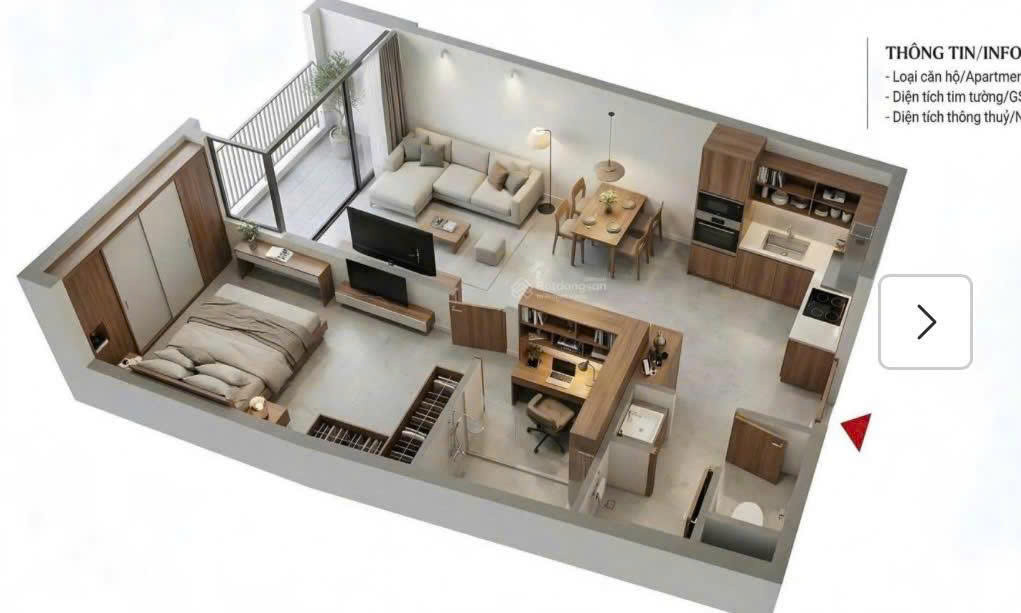 Độc quyền duy nhất 1 căn hộ 1BR+ thiết kế có thể ngăn thành 2 BR, phù hợp cho 2 vợ chồng trẻ và 1 em bé cùng ở . CH Sun FourS Tower tầng 12 view hướng ra trục đường lớn sầm uất, hướng mát mẻ