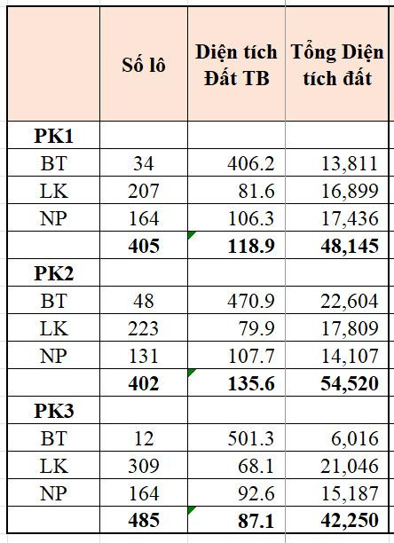 - DT các lô đất từ 60-500m