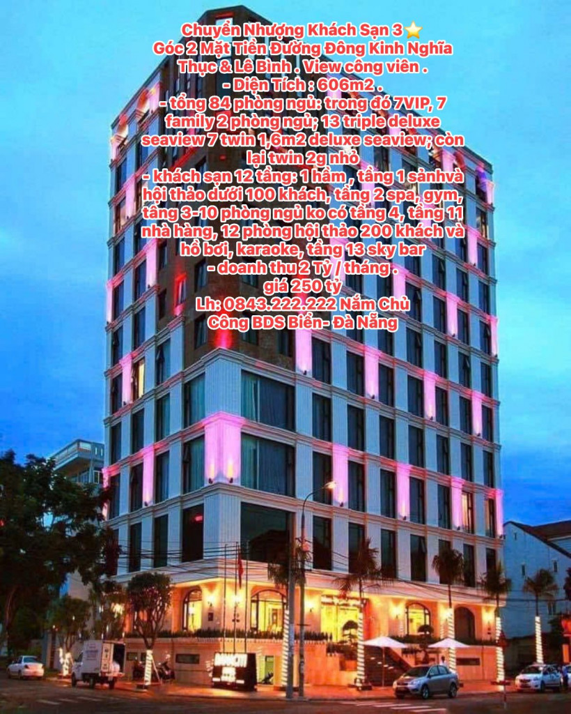 KHÁCH SẠN Sát Hồ Nghinh, 2 mặt tiền Đường Đông Kinh Nghĩa Thục & Lê Bình SỔ ĐỎ CHÍNH CHỦ, - doanh thu 2 Tỷ / tháng .