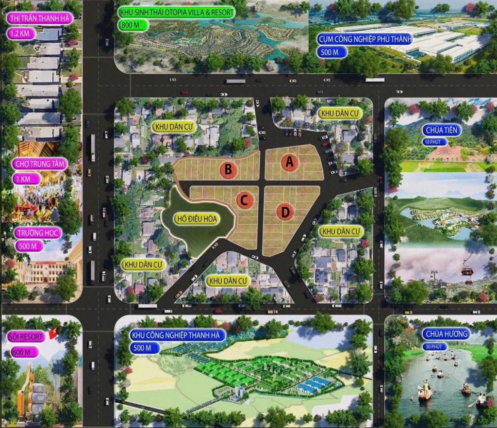 Vị trí đắc địa chỉ cách các CCN Phú Thành và KCN Thanh Hà chỉ 600m. Cách các khu du lịch sinh thái Sỏi Resort, Nghỉ dưỡng Utopia chỉ 1km.