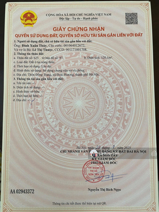 Lô đất tọa lạc tại thôn Đồng Trạng, xã Đoài Phương, khu vực Hòa Lạc. Khu vực dân cư đông đúc, hạ tầng đã hình thành ổn định và đang được đánh giá là một trong những vị trí đầu tư tốt của khu vực thời điểm hiện tại.